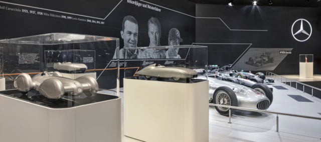 Für die jüngere Motorsportgeschichte bringt Mercedes-Benz den CLK-LM und damit den Siegerwagen aus der Internationalen FIA-GT-Meisterschaft 1998 an den Start. Die jüngste Epoche des Motorsports repräsentiert der MERCEDES AMG PETRONAS F1 W05 Hybrid Formel-1-Rennwagen, mit dem 2014 ein neues Kapitel in der einzigartigen Erfolgsgeschichte des Mercedes-Benz Motorsports beginnt. Dieses Fahrzeug, mit dem Lewis Hamilton 2014 den ersten von bislang vier Fahrertiteln für MERCEDES AMG PETRONAS gewinnt, ist zusammen mit weiteren Formel-1-Rennwagen des Teams auf dem Paddock von MERCEDES AMG PETRONAS ausgestellt.
