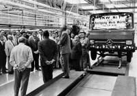 Das neue Werk Wörth nimmt die Produktion auf. 100 Mitarbeiter beginnen mit dem Rohbau von Lkw-Fahrerhäusern.