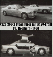 Doch erzählen wir die Boschert-Geschichte von vorn: Auf der Internationalen Automobil Ausstellung (IAA) des Jahres 1989 rückte der aufstrebende Industriedesigner Hartmut Boschert aus dem süddeutschen Emmendingen seinen Prototypen eines Flügeltür-Coupés auf Mercedes-Benz W124-Basis mit gekürztem Dachbereich und einer Frontpartie im Design der zu dieser Zeit gerade frisch vorgestellten SL-Baureihe R129 ins Rampenlicht.