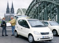 Die im Jahr 2001 vorgestellte Langversion der A-Klasse (W168) ist ein echtes Raumwunder, das auch bei Taxifahrern großes Interesse findet. Platzangebot einer Oberklasse-Limousine, vorbildliche Variabilität und neue Spitzenwerte beim Ladevolumen machen das Modell zur idealen Droschke. Das integrierte Taxi-Paket beinhaltet die speziell für den Taxibetrieb in der A-Klasse entwickelte Sonderausstattung: In der Mittelkonsole ist Platz für den Einbau eines modernen Funkgeräts, das Gehäuse für den Taxameter ist übersichtlich und gut erreichbar über dem Rückspiegel angebracht. Am linken Dachholm ist die Vorrüstung für die Befestigung eines einarmigen Taxi-Dachzeichens auf Wunsch kostenlos erhältlich.