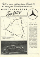 Im Olympiajahr1936 erscheint auf der Berliner-Automobil-Ausstellung, sorgfältig vorbereitet, eine Sensation: der Mercedes-Benz 260 D. Er ist der erste serienmäßige Diesel-Personenwagen. Der robuste und sparsame Mercedes-Benz Diesel wird bis heute zum Liebling der Taxifahrer. Kein Wunder, kostet doch das Dieselöl 1935 nur 17 Pfennig, weniger als die Hälfte des Benzins. Kein Wunder also, dass sich vor allem Taxifahrer für diesen Wagen begeistern. Die günstigen Betriebsbedingungen, die überdurchschnittliche Lebensdauer der Motoren und die robusten Karosserien, vor allem die geräumige Landaulet-Karosserie in einer speziellen Droschken-Ausführung mit bis zu sieben Sitzen kompensieren die höheren Kosten der Anschaffung bei weitem. Erfreulich außerdem, dass der Motor im Pkw nicht raucht, keinen Dieselgeruch verbreitet und zudem relativ leise ist. Es entsteht so etwas wie eine verschworene Gemeinschaft der Dieselbesitzer, denen es egal ist, dass der 260 D nicht so laufruhig und leise wie ein Benziner ist. Hauptsache, er ist wirtschaftlich und langlebig. An den Taxiständen sind sie noch bis weit in die 1950er hinein ein gewohnter Anblick.