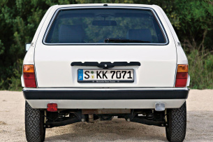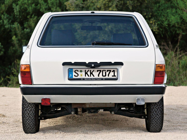Die Front kennzeichnete ein Plastikgitter mit dünnen horizontalen Streben, rechteckigen Lampen und einem in Wagenfarbe lackierten Stoßfänger. Ein Mercedes-Stern fand sich an dem Prototypen nicht! Eher versuchte das Team um Ingenieur Erich Waxenberger damals, mit Türgriffen des Golf I ab 1978 und Ford-Radkappen sowie Kölner Autokennzeichen, die Journalisten zu verwirren.