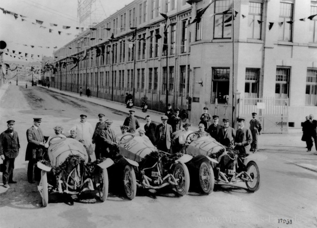 Am 4. Juli 1914 startet das Mercedes-Team nach intensiver Vorbereitung mit fünf dieser Wagen gegen eine vermeintlich übermächtige Konkurrenz vor allem Peugeot und Delage aus Frankreich, Sunbeam aus England und Fiat aus Italien. 20 Runden und damit rund 750 Kilometer sind auf dem schwierigen Kurs zurückzulegen. Christian Lautenschlager, Louis Wagner und Otto Salzer erringen nach mehr als sieben Stunden einen triumphalen Dreifachsieg, der den Mercedes-Erfolg des Jahres 1908 noch einmal deutlich übertrifft. Die Konstruktion des Motors mit der unternehmensinternen Bezeichnung M 93654 gilt als wegweisend. Und sie wird sogar Vorbild für Rolls-Royce-Flugmotoren des Ersten Weltkriegs: Nach dem Sieg in Lyon kommt ein Fahrzeug zu Demonstrationszwecken nach England, wo es vom Kriegsbeginn überrascht wird und dort verbleibt. Der Ingenieur Walter Owen Bentley kennt den Wert des Fahrzeugs und lässt es bei Rolls-Royce zerlegen und analysieren. Für seine eigenen Motoren übernimmt Bentley die Konstruktion des Ventiltriebs.