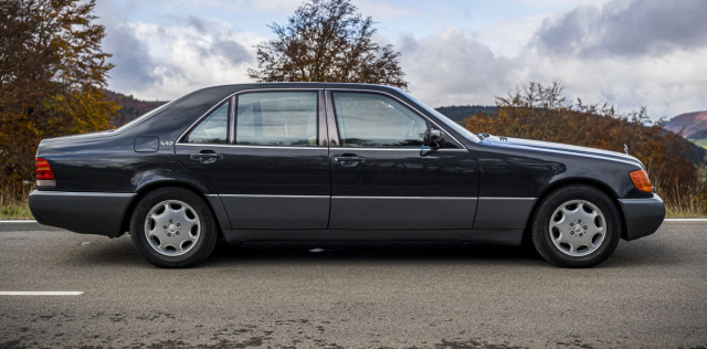 Als die Baureihe W140 das Zepter übernahm, glaubte man, den Kalten Krieg überwunden zu haben. Helmut Kohl war auf dem Gipfel seiner Popularität und Optimismus machte sich breit. Also durfte und wollte man zeigen, was man hat und auch auf der Straße die „ich habe es geschafft“-Attitüde nach außen tragen. Ohne sich Gedanken über politische Korrektheit und den Neidfaktor der Mitmenschen machen zu müssen. Eine S-Klasse gehörte zum Top-Entscheider wie die Zigarre im Büro. Die Karosserie setzte mit einer Länge von 5,11 Metern neue Maßstäbe. Die SEL-Version (Bezeichnung: V 140) legt noch einmal zehn Zentimeter obendrauf. Wie es sich gehört, zahlte diese Verlängerung ausschließlich in die Beinfreiheit des Fonds ein und generierte Businessclass-Feeling aus dem frisch vereinten Deutschland. Die Staatsmänner und Reichen der Post-Wende-Welt bekamen beim Anblick dieses Automobils leuchtende Augen. Der Spitzname für dieses Kunstwerk der deutschen Ingenieurskunst war schnell gefunden: Trutzburg.