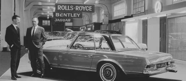 Auf dem Genfer Auto-Salon 1963 präsentiert Mercedes-Benz den neuen 230 SL (W 113). Er ist als komfortabler zweisitziger Reisewagen mit hohen Fahrleistungen konzipiert und ersetzt 190 SL (W 121) und 300 SL Roadster (W 198). Das Äußere ist geprägt von klaren und geraden Linien sowie dem SL-Gesicht mit großem zentralen Mercedes-Stern. Das optionale Hardtop mit hohen Scheiben und dem von schmalen Säulen getragenen Dach erinnert durch seine nach innen gewölbte Form an asiatische Tempelbauten. Das bringt dem W 113 den Beinamen „Pagode“ ein. Basis der Bodengruppe sind die Mercedes-Benz „Heckflosse“-Limousinen der Baureihe 111, die weltweit ersten Personenwagen mit Sicherheitskarosserie. Von der entsprechenden Forschung profitiert auch diese SL-Generation.