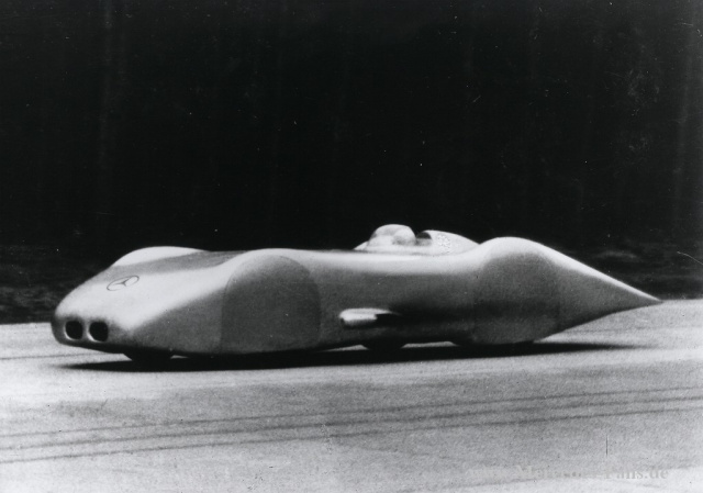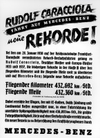 Rudolf Caracciola, damaliger Chefpilot der Mercedes-Benz Rennabteilung, fährt am 28. Januar 1938 den bis heute gültigen Rekord: Auf der Autobahn zwischen Frankfurt am Main und Darmstadt erzielt er eine Geschwindigkeit von exakt 432,692 km/h über einen Kilometer mit fliegendem Start. Außerdem wird mit 432,36 km/h der bestehende Rekord über die fliegende Meile eingestellt. Die Werte ergeben sich als Durchschnitt aus zwei Fahrten in entgegengesetzte Richtungen.