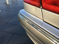 Zwei kleine Schwachstellen hatte der W210 allerdings auch. Am Kotflügel vorne rechts macht sich ein kleiner Rostfleck in Daumengröße bemerkbar und hinten an der Stoßstange befindet sich ein kleiner Riss. Auf der Hebebühne und von unten sah die E-Klasse richtig gut aus. Zudem ist das Baujahr ein sehr interessantes. Der W210 wurde bis 2002 gebaut. Dieser W210 ist Baujahr 2001 und hatte seine Erstzulassung im Jahr 2003. Das Facelift des W210 bekam andere Heckleuchten, eine sportliche Lippe auf dem Kofferraum, eine abgesengte Fahrzeugfront und viele weitere Extras.