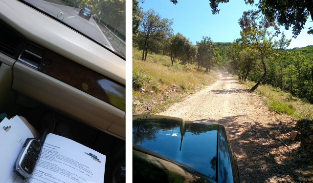 Am nächsten Tag fahren wir nach einer kalten und windigen Nacht im Zelt auf knapp 1.800 m Höhe runter in die italienischen Voralpen und vorbei an Mailand ziemlich direkt hinüber nach Frankreich. Dort geht es wieder in die Alpen, den Pass „Col de Madeleine“ hoch. Kurz danach steht dann unsere erste Offroad-Piste bevor. Die Streckenbeschreibung ändert sich: Statt der Nennung abzufahrender Orte erhalten wir Bilder von Wegabzweigungen und Prosa-Beschreibungen der nächsten Ziele. Navigationsvermögen und Kreativität bei der Interpretation der Bilder sind gefragt! Wir erklimmen später weitere Höhenmeter über den „Col de la Croix de Fer“ und sind mangels Motorleistung gezwungen, das Automatikgetriebe wie ein Schaltgetriebe zu behandeln. Im Neuzustand waren es mal 109 Pferdchen – heute sind es wohl deutlich weniger. Erst gegen Mitternacht erreichen wir unser Tagesziel Grenoble.