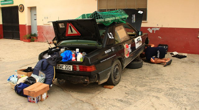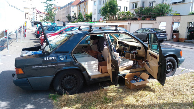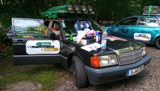 Doch der Reihe nach: Die Idee, eine Rallye zu fahren, begleitete mich schon länger und reifte zunehmend – wie sollte es bei einem Abenteuer wie einer Rallye anders sein – bei dem ein oder anderen Bierchen. Es gibt diverse Rallye-Angebote mit verschiedenen Ausprägungen. Unsere Wahl fiel auf „Off The Beaten Track“ von Süddeutschland nach Südspanien – einerseits zeitlich und vom Streckenprofil im für uns passenden Rahmen und andererseits nimmt man das Auto wieder mit nach Hause – so jedenfalls der Plan. Denn ich wollte die Rallye gerne mit meinem Alltagsauto antreten: Ein 190 E 1.8 Baujahr 1992 mit stolzen 634.000 km. Es ist für mich nicht einfach irgendein 190er. Ich kenne ihn seit ich vier Jahre alt bin. Damals saß mein Opa hinter dem Volant. Warum auch immer, fand ich das Auto schon immer genial. Ich hätte mir nie träumen können, ihn eines Tages selbst zu besitzen. 2009 war es dann recht unerwartet soweit: Als Abi-Geschenk vom Opa mit damals schon 372.000 km habe ich ihn übernommen – mit vielen Gebrauchsspuren – er war noch nie ein Sonntagsauto. Seither war und ist der 190er mein treuer Begleiter im Alltag. Beste Voraussetzungen also für unser beider Horizonterweiterung.