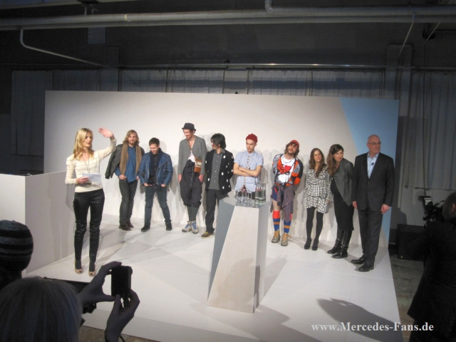 Mercedes-Benz-TV Moderatorin Tanja Bülter leitete die Pressekonferenz mit der Kuratorin des ModeMuseums in Antwerpen, Kaat Debo und Michael Bock, Leiter Mercedes-Benz Classic und stellt die einzelnen Künstler vor.