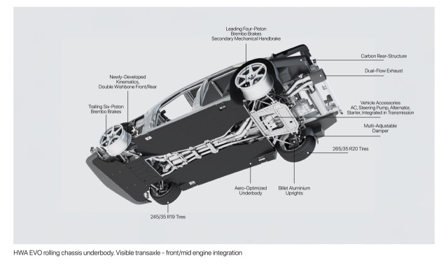 „Der HWA EVO ist weit mehr als nur ein ‚Restomod‘. Um unsere Vision dieses Fahrzeugs vollständig umzusetzen, betreiben wir einen einmalig hohen Aufwand in Bezug auf Design, Technik und Zulieferer,“ erklärt Gordian von Schöning, CTO von HWA. „Wir haben nicht nur auf unsere eigene jahrzehntelange Erfahrung im Motorsport und in der Produktion von Supersportwagen zurückgegriffen, sondern auch Techniken und Partnerschaften genutzt, die normalerweise nur auf OEM-Ebene zu finden sind, um sicher zu sein, dass unser Fahrzeug dem Namen EVO würdig wird.“