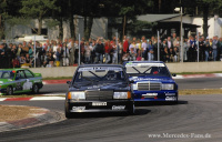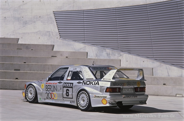 Ab 1988 engagiert sich Daimler-Benz durch eine offizielle Unterstützung der Teams in der DTM. Ein Jahr darauf erscheint eine Homologations-Version mit Straßenzulassung: Der 190 E 2.5-16 Evolution I rollt heran. Die Motorleistung ist unverändert, doch das Fahrwerk wurde modifiziert für die Rundstreckenarbeit, für die der Evo I gedacht ist, denn er ist die Basis für einen DTM-Tourenwagen der Gruppe A. Exakt 502 Stück werden gebaut, um die zur Teilnahme notwendige Rennsport-Homologation zu erlangen. In zahlreichen Rennen mischt er sehr erfolgreich mit. Doch die Ansprüche steigen. So ist es nur ein logischer Entschluss: Ein noch stärkerer Evo muss her.