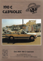 "Das Kennzeichen habe ich aufgrund der Typenbezeichnung im Brief gewählt. Danach ist es ein AKH/Caro 201C," erklärt Rainer. "In den Prospekten wurde das Fahrzeug dann als 190C beworben, wobei vermieden wurde, eine Perspektive zu zeigen in der der MB-Stern sichtbar wäre." Folgt man dem heutigen Mercedes-Baureihen-System müsste der 190er kein W201 oder C201 sondern ein A201 sein, denn C steht nicht für Cabriolet sondern für Coupé. Cabriolets mit Stern sind A wie aufgeschnitten" oder "Autocabriolet"....