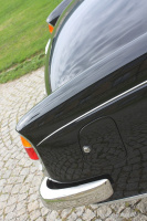 Bei der Bereifung bedarf es eines Kompromisses: Zwar gibt es komfortablere Alternativen zu den originalen Reifen, die über die bekannten Oldtimerreifenhändler in 7,25x13 zu beziehen sind, aber diese sind fast alle im Abrollumfang zu klein. Aber das Ergebnis mit den originalen Radkappen auf den lackierten Felgen entschädigt. Nachdem die Karosse wieder auferstanden ist, hieß es, dem neuen Rostbefall vorzubeugen. Also werden alle Hohlräume der Karosse mit Hohlraumversiegelung behandelt und die teuren Kotflügel mit den finnischen Lokari-Innenkotflügeln ein Zubehör, das es schon seit den 50er Jahren gibt, ausgestattet.