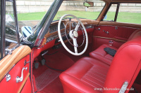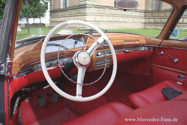 Der Ponton Coupé & Cabrio hat eines der schönsten Holzarmaturenbretter die man in der Autowelt jemals verbaut hat. Das massive Holzteil konnte in den verschiedenen Furnierarten Makassar, Wurzelholz und Palisander oder natürlich nach Sonderwunsch geordert werden. Auch mit Leder wurde nicht gegeizt, es findet sich auf jedem Quadratzentimeter im Innenraum. Ein begehrtes Extra war das von Webasto gelieferte Stahlschiebedach, mit dem sich der Neupreis des Mercedes-Benz Ponton Coupés über den des Cabrios treiben lies.