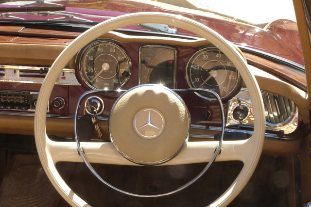 Mittlerweile hat das Auto 78 000 Meilen auf dem Tacho. Nicht viel bei über fünfzig Jahren Autoleben. Das Klima an der Costa del Sol und den auch heutigen Ansprüchen genügenden Komfort des SL genießend, hat Zahid sein Cabrio im täglichen Einsatz. Das gilt natürlich nicht für auch in Marbella gelegentlich auftretendes schlechtes Wetter. Die Zuverlässigkeit ist keine Frage und der Fahrspaß ganz gewiss nicht! Wenn es zwischendurch ´mal wieder etwas britisch werden soll, geht´s eben um´s Eck nach Gibraltar … Da passt dann auch der Rechtslenker wieder.