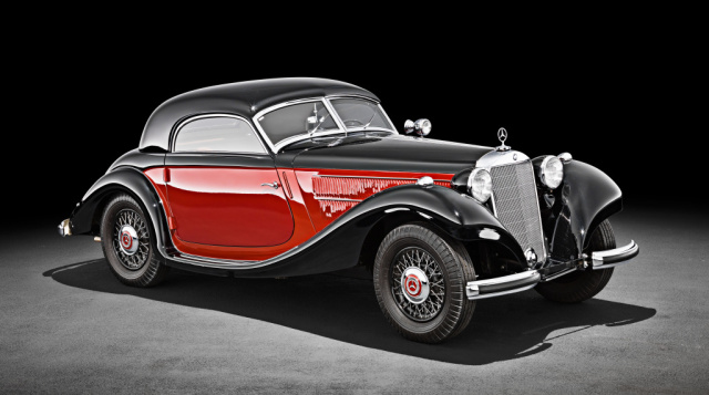 1937 stellt Mercedes-Benz den 57 kW (78 PS) starken Typ 320 (W 142) vor. Das komfortable und leistungsstarke Sechszylindermodell der Oberklasse wird in zwei Radständen und zahlreichen Karosserievarianten gebaut – so wie zuvor der Typ 290 (W 18), den er ablöst. Lediglich zwei Jahre lang produziert Mercedes-Benz dabei den kürzeren Typ 320 n mit 2.880 Millimetern Radstand, während der Typ 320 mit 3.300 Millimetern Radstand bis 1942 gebaut wird (ab 1939 mit 3,4-Liter-Motor). Das 320 n Kombinations-Coupé präsentiert sich – wie das ebenfalls erhältliche Cabriolet A – als sportlich-elegante Variante der Baureihe W 142. Es hat bei seiner Markteinführung einen Listenpreis von 12.300 Mark und ist damit gut 3.300 Mark teurer als die Limousine mit Schiebedach. Der Begriff Kombinations-Coupé bezeichnet damals ein Cabriolet mit abnehmbarem Hardtop. Das Fahrzeug aus der Sammlung von Mercedes-Benz Classic, das zur Pebble Beach Tour d’Elegance startet, unterstreicht den Anspruch an automobile Eleganz mit der zweifarbigen Lackierung in rot und schwarz.