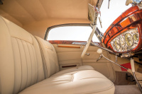 Das Ersatzrad ist in einer Vertiefung im Kofferraumdeckel untergebracht, während ein Set Karl Baisch Koffer in Ermangelung eines Kofferraums hinter den Vordersitzen Platz findet. Ein flaches Verdeck komplettiert den schnittigen Look des Cabriolet A-Modells. Glücklicherweise besitzt das Fahrzeug noch die alten Fahrzeugpapiere und das Karosseriebuch, welche zusammen die Geschichte des 1937er Mercedes-Benz 540 K Sport Cabriolet A dokumentieren. So bestellte Ende 1936 eine gewisse Miss Martha Jordans unter Kommission-Nummer 228752 das Sport Cabriolet A. Anschließend wurde das nackte Chassis mit der Nummer 154146 der Bestellung zugeordnet und am 16. November 1936 von dem Stuttgarter Werk zu den Karosseriebauern von Sindelfingen geliefert.