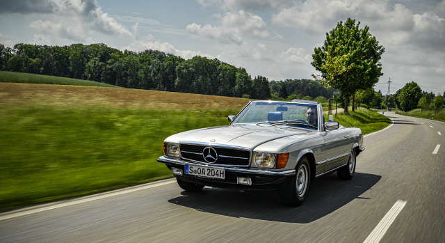 Übrigens: Der R 107 ist nicht der erste SL mit einem V8. Mitte der 1960er Jahre fummelte die Mercedes-Benz Entwicklungsabteilung unter Rudolf Uhlenhaut einen 6,3-Liter V8 aus dem W109 in den damals aktuellen SL der Baureihe W113. Es blieb allerdings bei diesem einen Einzelstück. Der R 107 ist dagegen der erste SL, bei dem der V8 Einzug in die Serie erhielt. 50 Jahre nach der Weltpremiere wirkt die Baureihe keineswegs angestaubt, ganz im Gegenteil: Der R 107 erfreut sich nach wie vor höchster Beliebtheit.