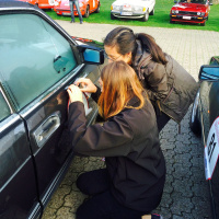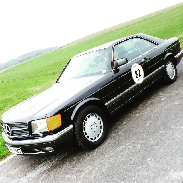 Wir sind unterwegs bei der Köln Historic 2015, einer Rallye für Old- und Youngtimer. Rund 130 Fahrzeuge haben sich angemeldet, um gemeinsam die Rallyestrecke durch den Westerwald tourensportlich im Angriff zu nehmen. Zwölf Prüfungen warten auf uns. Uns, das ist in diesem Fall neben Finn und mir ein Mercedes-Benz 560 SEC von 1989. Und nicht zu vergessen, zwei Kolleginnen der Daimler AG, die uns obendrein bei den letzten Vorbereitungen des Autos unterstützt haben. Wobei diese Formulierung nicht ganz korrekt ist, eigentlich haben Sandra und Binh alles für uns gemacht.