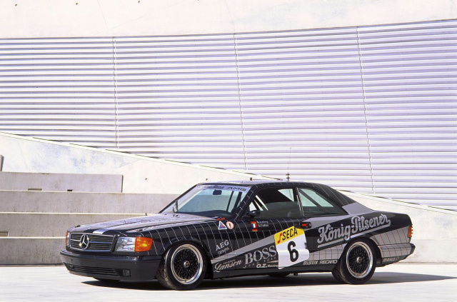 Nun ist der 560 SEC aber vom Naturell eher ein sanfter Gleiter als ein Sportwagen, der sich am liebsten von einer Kurve in die nächste wirft. "Ganz schon kopflastig!", so mein Pilot, als er irgendwo im Westerwald mit dem Mercedes Coupé durch die engen Kurven pflügte. „Ein Sperrdifferenzial wäre vielleicht von Vorteil“, brummte er in engen Spitzkehren. „Rennschalensitze vielleicht auch!“ Ja, man kann immer alles besser machen und im Laufe des Tages hatten wir so viel Positionen auf unserem imaginären Ausstattungs-Block, dass unser 560 SEC dem „Nadelstreifen“-500 SEC AMG, mit dem Heyer/Glemser/Mertes 1989 in Spa antraten, gedanklich schon verdammt ähnlich sah.