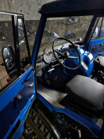 In einer weiteren Restaurationsphase kam der Innenraum in den Genuss einer umfassenden Aufarbeitung. Mit neuen Bezügen für die Sitze, die Türverkleidungen und den Dachhimmel präsentiert sich der Unimog nunmehr wie neu. Deshalb vermittelt der Mercedes trotz seines fortgeschrittenen Alters den Eindruck, als wollte er direkt mit der Arbeit beginnen, um sich in typischer Unimog-Manier tüchtig ins robuste Zeug zu legen. Könnte er sicherlich auch, doch ist die tadellos instandgesetzte Doka für die richtig harten Schmuddeljobs wohl jetzt zu schade...
