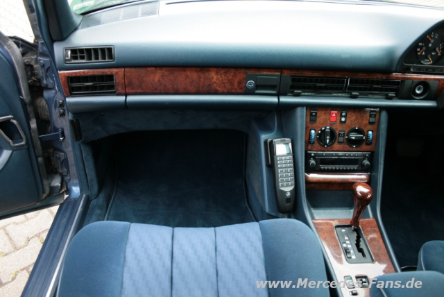 Der Rechtslenker war in einen super Zustand, technisch wie optisch Note 3. Nachgerüstet wurde ein MB Telefon mit D-Netz, "wobei Telefonkonsolen für die S-Klasse zu finden ist schon schwer ist, für einen RHD aber noch viel schwerer", berichtet Frank. Dazu wurden Leseleuchten hinten nachgerüstet und ein Wurzelholzlenkrad eingebaut. Ein Beckerradio mit Navi und versteckte Soundanlage sind ebenfalls an Bord. Schließlich wurden die Gullideckelfelgen neu lackiert. Der Kabelbaum für die beleuchteten Aschenbecher hinten wird in Kürze nachgerüstet.