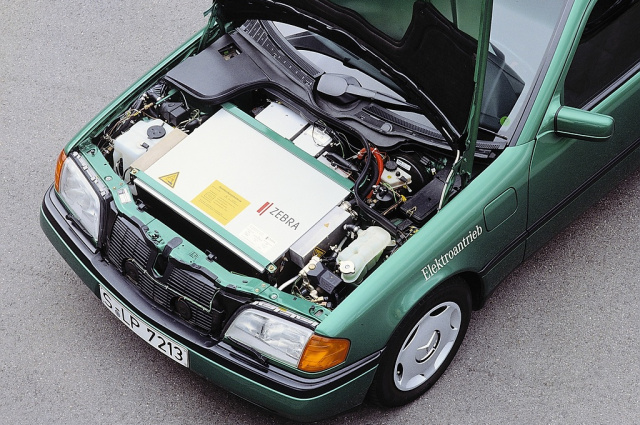 Eine solche Batterie kommt bereits drei Jahre zuvor in einem Erprobungsfahrzeug auf Basis der Mercedes-Benz C-Klasse (Baureihe 202) zum Einsatz. Der Energiespeicher auf Natrium-Nickelchlorid-Basis liefert eine Nennspannung von 280 Volt und hat eine Kapazität von 35,6 kWh. Das eingebaute Ladegerät ermöglicht per Schnellladung, die Batterie innerhalb von 30 Minuten wieder zur Hälfte zu füllen. Unterwegs lädt der Antriebsmotor beispielsweise beim Bremsen den Energiespeicher per Rekuperation ebenfalls auf. Die Batterie wiegt 420 Kilogramm.