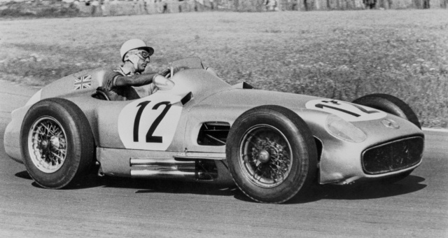 Auf dem Mercedes-Benz 300 SLR Rennsportwagen gewinnt der damals 25 Jahre alte britische Fahrer die legendäre Mille Miglia in der besten Zeit, die je dort erzielt wird. Das am 30. April gestartete Rennen von Brescia nach Rom und zurück auf einer 1.000 Meilen langen und extrem anspruchsvollen Route absolviert er zusammen mit Beifahrer Denis Jenkinson mit einer Durchschnittsgeschwindigkeit von 157,65 km/h.