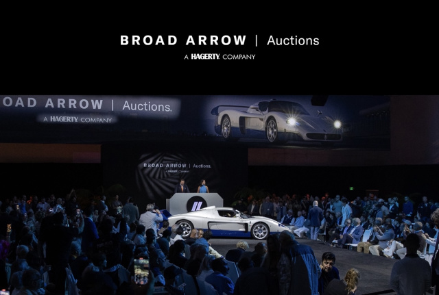 Ganz ähnlich sieht es bei Broad Arrow aus. Das Unternehmen der Hagerty-Gruppe bot die Fahrzeuge unter anderem in einem Flugplatzhangar an. Die beiden Auktionatoren Lydia Fenet und Thomas Forrester erlösten durch die abgegebenen Gebote einen Umsatz von fast 58 Millionen US-Dollar führten; 80 Prozent aller Fahrzeuge wurden verkauft. Das teuerste versteigerte Fahrzeug war mit 5.202.500 US-Dollar ein 2005er Maserati MC12 Stradale. Angesichts des Generationswechsels auf dem Markt konzentriert sich auch Broad Arrow zunehmend auf moderne Sammlerstücke wie japanische Sammlermodelle oder modernen Performance-Fahrzeugen.
