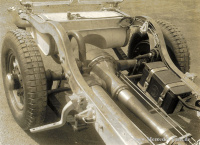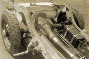 Das vorne und hinten gekröpfte Niederrahmen-Chassis mit Kreuzverstrebung in der Mitte besteht aus geschlossenen U-Profil-Stahlträgern. Die Vorderachse, eine Starrachse aus Chromnickelstahl mit einem Doppel-T-Profil und die hintere Starrachse sind durch lange Halbelliptikfedern mit dem Rahmen verbunden und werden bei ihrer Federarbeit durch Hebelstoßdämpfer unterstützt.