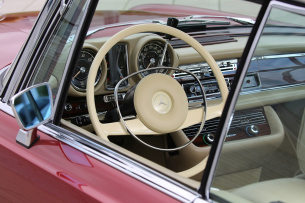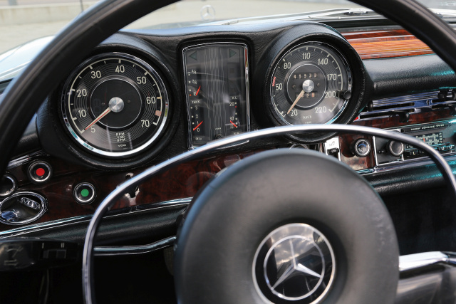 Lediglich eine neue Dachhaut – selbstverständlich aus originalem Sonnenland-Stoff – frischten das Original auf. Auch sein heutiger Besitzer, der diesen den Solitär noch zu D-Mark-Zeiten von Kienle erwarb, ist sich seiner Verantwortung bewusst: Er hegt und pflegt den Wagen. Selbstredend sieht der Mercedes-Fan sein Auto nicht als „Stehzeug“, sondern nutzt es bei schönem Wetter auch als besonders exklusives Fahrzeug, nicht um des Genusses willen, sondern auch, um Standschäden vorzubeugen. Als er den Wagen erwerben konnte, hatte dieser 121.000 Kilometer zurückgelegt, heute zeigt der fünfstellige Kilometerzähler 45839 an, also 145.839 Kilometer. Dass der nunmehr 48 Jahre alte Wagen sich noch in einem derartig guten Zustand befindet, ist ein Beweis für die Mercedes-Benz Qualität jener Jahre, zeigt aber auch, dass sein Besitzer ihn in jeder Hinsicht wertschätzt.
