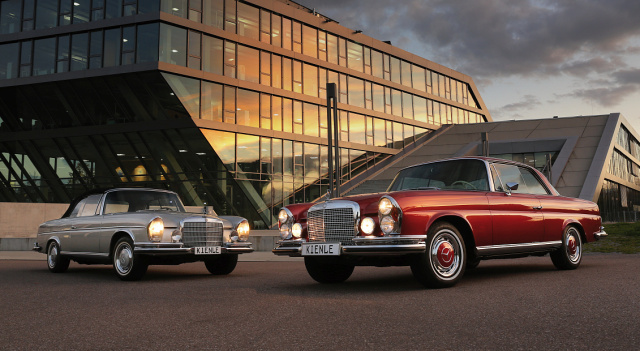 Das Coupé ist der erste je für den Verkauf gebaute W111-Zweitürer mit dem 3,5 Liter-V8-Motor, ausgeliefert am 26. August 1969, rund drei Monate vor Anlauf der Serienproduktion. Und das Cabriolet ist das erste und einzige ab Werk ausgelieferte offene Auto der W111-Baureihe mit hydraulisch betätigtem Verdeck. Sie beide sind unwiederbringliche Zeitzeugen.
