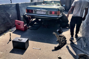 In der Stern-Warte von Marcus Hölper finden sich gut 30 Mercedes Youngtimer und Klassiker. Zum Mieten, für Chauffeur-Fahrten oder organisierte Reisen rund um Kapstadt. Dieter Losskarn lieh sich den nach oben offenen R 107 für eine Kaprunde aus.