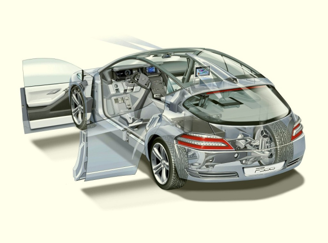 Das Forschungsfahrzeug F 500 Mind präsentiert 2003 einen Hybrid-Antrieb, der einen Diesel-V8-Motor mit einer Elektromaschine verbindet. Der Diesel erreicht eine Leistung von 184 kW (250 PS) und ein maximales Drehmoment von 560 Newtonmetern, darauf setzt der Elektromotor noch einmal 50 kW (68 PS) und 300 Newtonmeter maximales Drehmoment. Eine elektronische Regelung der Motorenverbindung lässt die jeweiligen Vorteile der beiden Antriebe zur Geltung kommen. Während der Elektromotor beim Anfahren, Einparken und langsamer Fahrt den Wagen allein bewegen kann, wird der starke Dieselmotor bei höherer Leistungsabfrage eingeschaltet. Gerade im Stadtverkehr bewährt sich diese Verbindung beider Motorsysteme.