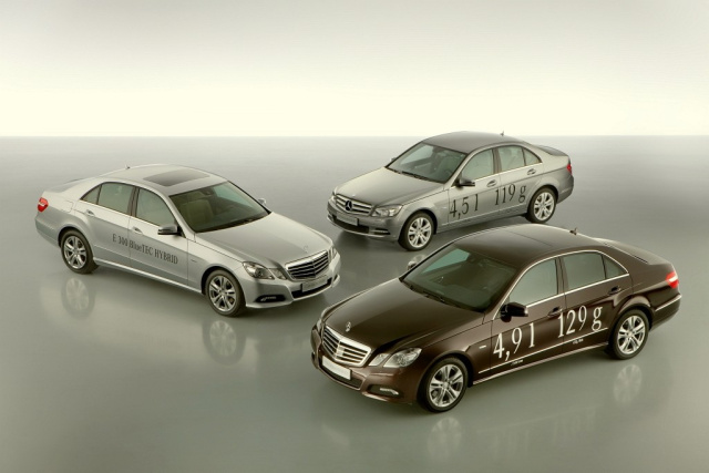 2011 kommt der E 300 BlueTEC HYBRID auf den Markt. Dieser erste serienmäßige Dieselhybrid-Personenwagen eines europäischen Herstellers ist als Limousine und als T-Modell zu haben. Das 2010 auf den Automobil-Salon in Genf präsentierte Fahrzeug kombiniert den 2,2-Liter- Vierzylinder-Dieselmotor mit 150 kW (204 PS) Leistung und ein leistungsstarkes Hybridmodul mit 15-kW-Elektromotor. Die Elektromaschine ist dabei zwischen Verbrennungstriebwerk und Siebengang-Automatikgetriebe angeordnet und unterstützt den Dieselmotor beim Beschleuni-gen (Boost-Effekt), eignet sich aber auch für rein elektrisches Fahren. Außerdem wird sie im Generatorbetrieb zur Bremsenergie-Rückgewinnung (Rekuperation) genutzt. Der Verbrauch des E 300 BlueTEC HYBRID beträgt 4,1 Liter Dieselöl pro 100 Kilometer. Das entspricht einem CO2-Ausstoß von 109 Gramm je Kilometer.