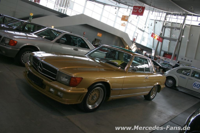 ..der auf der RetroClassics zum Kauf angeboten wurde, wie dieser 73er 450 SLC Lorinser, gab es einen gelben Angebots- Zettel mit Preis und Kontakt-Informationen.