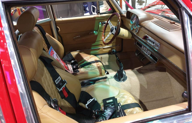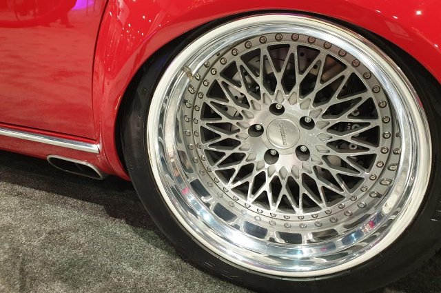 Dieser Mercedes-Benz 280 SEL von 1969 im Custom-Style von Besitzer Josh Stahl steht auf Forgeline RS3 Felgen mit Pirelli P-Zero Bereifung. Vorne 18 Zoll und hinten 19 Zoll (335/30ZR18 und 355/30ZR19). Hinter den Felgen verbergen sich große Wilwood Bremsen. Auffallend sind auch die Kotflügelverbreiterungen, die Tieferlegung und die Farbe. Es handelt sich hierbei tatsächlich um eine originale Mercedes-Benz-Farbe: Mars Rot.