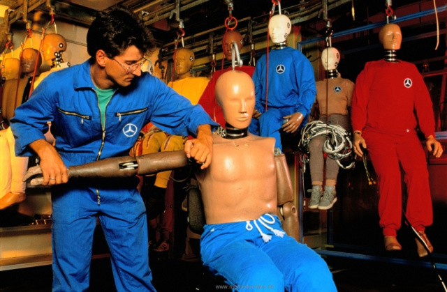 Natürlich hat die Unfallforschung gerade bei Mercedes-Benz in den letzten 50 Jahren enorme Fortschritte gemacht. So wandelte sich der Frontalaufprall auf ein starres Hindernis zum Offset-Crash auf eine deformierbare Barriere, was ein realistischeres Unfallszenario abbildet. Auch digitale Crashberechnungen, die erstmals bei der Entwicklung der Baureihe W 124 zum Einsatz kamen, sind heute eine Selbstverständlichkeit. Hinzu kommt die so genannte kontinuierliche Unfallbeobachtung, bei der Fahrzeuge nach realen Verkehrsunfällen untersucht werden. Aber auch der klassische Crashtest unter kontrollierten Bedingungen, wie ihn Mercedes 1959 einführte, ist bis heute, wenn auch in stark optimierter Form, ein unverzichtbares Instrument zur Erhöhung der passiven Sicherheit im Automobilbau.