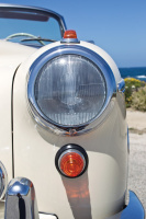 Der Radstand der beiden Zweitürer betrug nur 2.700mm. Auch in den Außenmaßen waren Coupé und Cabrio kürzer als die Limousinen. Trotzdem wirkte besonders die offene Version langgestreckt und sehr elegant. Das lag zum einen an den langen Türen, welche aus Gewichtsgründen ein Aluminiumgerüst mit Stahlblechbeplankung aufwiesen. Zum anderen am üppigen Chromzierrat. So läuft eine Zierleiste auf Scheinwerferhöhe, unterhalb des Türgriffes, die die Ausbuchtungen der hinteren Kotflügel nur noch leicht betonte und eine weitere durchgehende Leiste entlang der Radausschnitte und der Wagenunterkante, bis nach hinten.