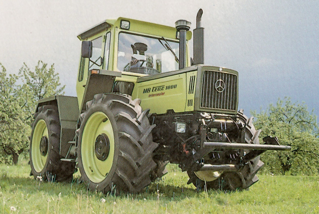 Noch etwas kraftvoller wird es 1990. Hier stellen die Schwaben auf der Fachmesse Nordargrar – wiederum in Hannover - den neuen MB Trac 1800 Intercooler vor, der durch seine Nomenklatur aus seiner Leistung keinen großen Hehl macht. Er wird von einem Dieselmotor mit 132 kW / 180 PS angetrieben, der auf dem seit 1987 gebauten MB Trac 1600 Turbo basiert, dessen sechs Liter großer Sechszylindermotor 115 kW / 156 PS leistete. Der neue Ladeluftkühler des Treibwerks vom Typ OM 366 LA sorgt für das Leistungsplus von 24 PS, das dem mächtigen Traktor bestens steht. MB Trac 1500 und 1800 Intercooler gehörten zur 1976 eingeführten schweren Klasse der Mercedes-Systemtraktoren. Außerdem gab es Typen der leichten (seit 1972, Baureihe 440) und mittleren Klasse (seit 1982, Baureihe 441). 1987 umfasst das MB-Trac-Programm acht Modelle vom kleinen MB Trac 700 mit seinen 50 kW / 68 PS bis zum 1600er Turbo mit eben 115 kW / 156 PS.