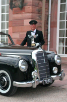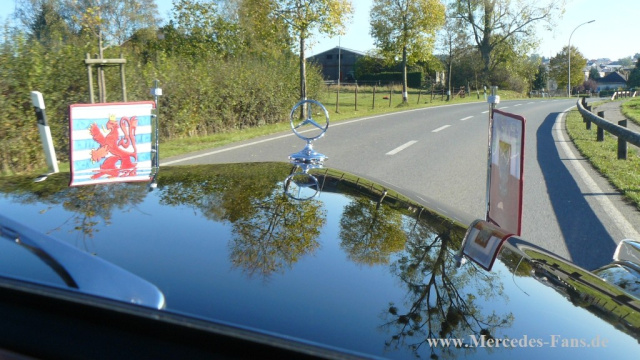 Dann kommt 1999 ein Torso oder doch nur ein Haufen Schrott?- aus dem Osten nach Belgien und der importierte Mercedes Oldtimer versinkt für weitere drei Jahre im Dornröschenschlaf. Danach findet sich ein Prinz, der die Hauptfigur wieder wach küsste. Es muss ein langer Kuss gewesen sein, denn immerhin dauerte es sieben Jahre, bis der Repräsentant von einst wieder im makellosen Glanz erstrahlte. In diesem Zustand ging der Mercedes Oldtimer 2010 bei seinem jetzigen Besitzer in Dienst. Dass diesem auch weiterhin die große Welt jetzt im Kreis hochkarätiger Senioren - offen steht, ist bei seinem imposanten Erscheinungsbild fast schon eine Selbstverständlichkeit.