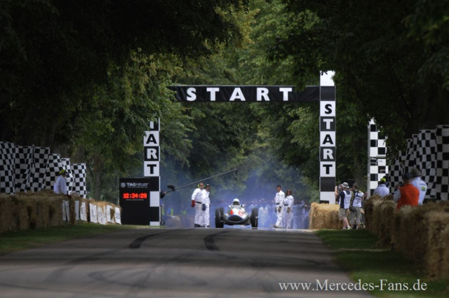Geschwindigkeit, Kraft und Stil, visionäre Technik und das Bewusstsein für die Geschichte, aber auch Eleganz und Luxus: Das sind Stärken der Marke Mercedes-Benz. Und es sind Facetten, welche die pure Faszination am Automobil ausmachen, die auch heuer wieder tausende Besucher zum Festival of Speed (01.07-03.07.2011) lockte. Mercedes-Benz Classic war in diesem Jahr bei diesem Spektakel wieder dabei. Bei der diesjährigen Veranstaltung, die unter dem Motto Racing Revolutions Quantum leaps that shaped motor sport stattfand, nahm die Classic-Sparte mit bedeutenden Motorsportfahrzeugen auf der 1,86 Kilometer langen Bergrennstrecke teil. Darüber hinaus zeigte Mercedes-Benz Classic die Ausstellung 125! Years Inventor of the Automobile. Diese Themenschau zelebriert Meilensteine der Markengeschichte seit dem Patent-Motorwagen von Carl Benz aus dem Jahr 1886. In der großen Bilderstory zum Anklicken zeigt Mercedes-Fans.de die schönsten Mercedes-Bilder dieser legendären Veranstaltung.