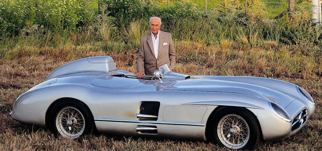 Auf dem Bild: Juan Manuel Fangio mit einem Mercedes-Benz Typ 300 SLR von 1955, Foto: Mercedes-Benz Group