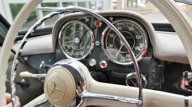 Wie aber schaut es mit den Leuchttürmen von einst aus? Ist auch eine Design-Ikone wie der 190 SL, immerhin der legitime kleine Bruder des legendären 300 SL heute schwerer verkäuflich als noch vor 15 oder 20 Jahren? Zumindest wurden in diesem hier präsentierten Fall weder Kosten noch Mühen gescheut, den 56er 190 SL in einen absolut herausragenden Zustand zu präsentieren.