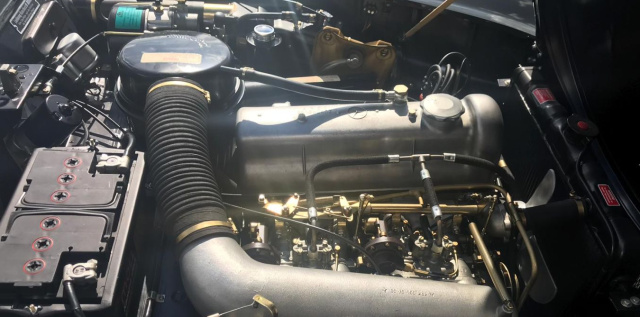 Wo nötig, wurde das alte Blech durch New Old Stock, also alte neue Blechteile ersetzt und die Karosserie sorgfältig neu zusammengesetzt. Nach Aussage des Verkäufers betrifft dies auch die Schweißnähte und vor allem die Spaltmaße, die rundum exakt 4 mm betragen. Jetzt sollen die Türen wieder mit dem klassischen satten Mercedes Klang schließen. Der 190 SL wurde im Original Farbton 190 "graphitgrau" lackiert und der Verkäufer versichert, dass die Qualität der Lackierung den damaligen Werksauslieferungszustand deutlich übertrifft. Fakt ist, dass das satte, tiefe Grau dem Zweisitzer hervorragend steht und die Qualität der Lackierung deutlich zu erkennen ist.