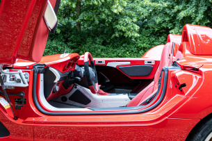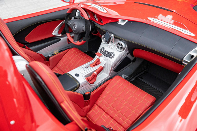Das Auto, das am 6. Oktober von Bonhams im Rahmen der Auktion The Zoute Sale angeboten wird, ist das tatsächlich letzte der 75 produzierten SLR Stirling Moss-Modelle. Er verließ das Werk am 22. Dezember 2009 und wurde als Neuwagen in die Schweiz geliefert, wo er am 16. März 2010 im Kanton Waadt zugelassen wurde. Er verfügt über eine werksseitige rote Sonderlackierung mit dem Code 000U. Darüber hinaus machen ihn einzigartige Optionen wie goldfarbene Bremssättel, eine rote Lederausstattung „Silberpfeil“ mit gelben Nähten und breite Fahrer- und Beifahrersitze nur eine Spur mehr besonders.