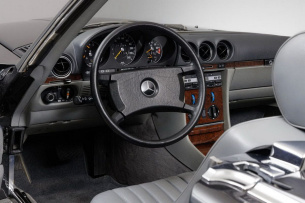 Die SL-Baureihe R107 wurde 1971 als Nachfolger der „Pagode“ (W113) eingeführt und prägte mit ihren Breitband-H4-Scheinwerfern und den großen, geriffelten Rückleuchten das Mercedes-Benz-Design der 1970er-Jahre maßgeblich. Zwischen 1971 und 1989 wurden insgesamt 237.287 Fahrzeuge dieser Baureihe produziert, wobei der 300 SL (R107 E 30) mit nur 13.742 Exemplaren ein eher seltener Vertreter der Baureihe 107 ist.
