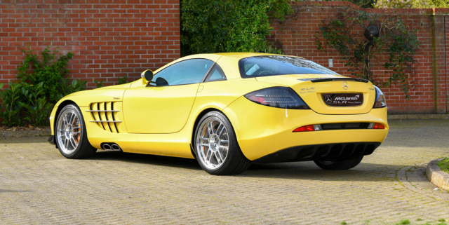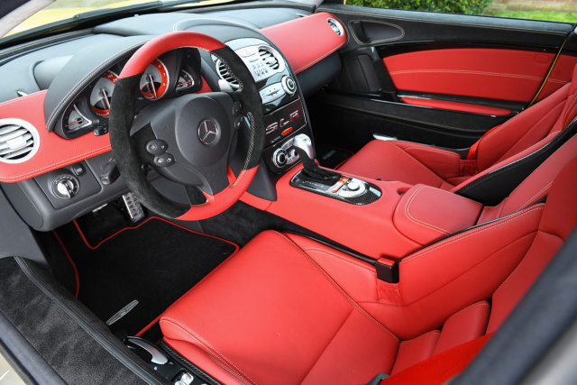 Vom SLR wurden über 2.000 Fahrzeuge produziert. Besonders exklusiv ist die Edition, die das Auktionshaus Bonhams aktuell anbietet. Denn hierbei handelt es sich um eins von zehn gebauten Crown-Edition-Modellen, die auf der Basis eines SLR 722 speziell für Königshäuser im Nahen Osten produziert wurden. Dieses Modell hat eine einzigartige Farbkombination: blassgelb und eine Lederausstattung in rot. Der hier gezeigte SLR Crown Edition wurde damals neu nach Kuwait ausgeliefert. Er hat nur 72 Kilometer auf dem Tacho und wurde als Teil einer großen Sammlung immer trocken gelagert. Das Auktionshaus Bonhams erwartet für den SLR Crown Edition einen Preis von 300.000 bis 400.000 Euro. Am 10. Mai wird der Exot in Monaco versteigert.