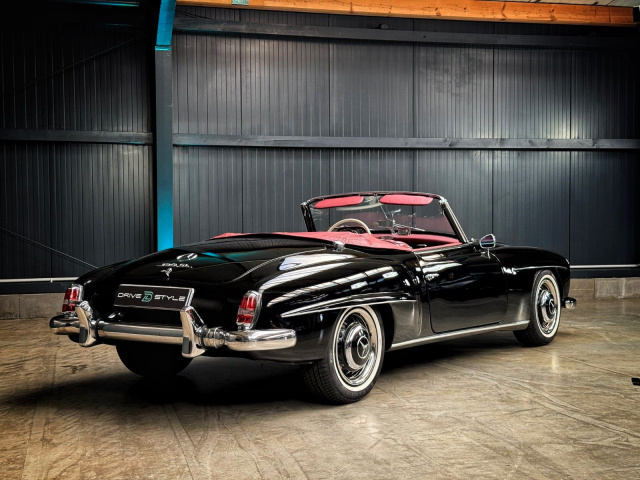 Die Basis für den Umbau bildet das originale Chassis des 190 SL, das auf die Technik des legendären 190 E 2.5-16V umgerüstet wurde. Das bedeutet: modernisiertes Fahrwerk, leistungsfähige Bremsanlage und ein kraftvoller Antriebsstrang – alles für ein deutlich verbessertes Fahrerlebnis. Trotz der umfassenden technischen Überarbeitung bleibt die ikonische Optik des 190 SL vollständig erhalten. Der Kilometerstand des Basisfahrzeugs liegt bei knapp 60.000 Kilometern. Seit dem Umbau wurden knapp 20.000 Kilometer zurückgelegt. Durch den Umbau dürfte der 190 SL nun um die 200 PS unter der Haube haben. Genau Leistungsdaten verrät man bei DriveStyle leider nicht. Der Preis für den rot-schwarzen Restomod liegt übrigens bei 170.000 Euro. Wer sich für das Fahrzeug interessiert, kann sich den Benz hier anschauen.